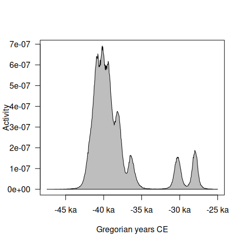 These examples use data available through the ArchaeoData package which is available in a separate repository. ArchaeoData provides MCMC outputs from ChronoModel, OxCal and BCal.