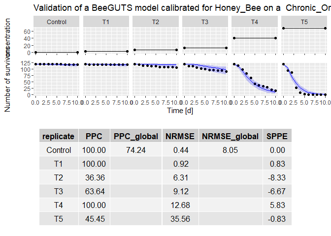 The goal of BeeGUTS is to analyse the survival toxicity tests performed for bee species. It can be used to fit a Toxicokinetic-Toxicodynamic (TKTD) model adapted for bee standard studies (acute oral, acute contact, and chronic oral studies). The TKTD model used is the General Unified Threshold model of Survival (GUTS).