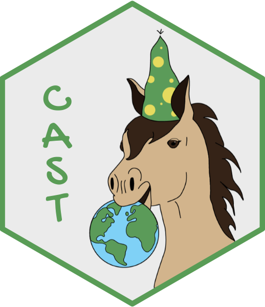 Supporting functionality to run ‘caret’ with spatial or spatial-temporal data. ‘caret’ is a frequently used package for model training and prediction using machine learning. CAST includes functions to improve spatial or spatial-temporal modelling tasks using ‘caret’. To decrease spatial overfitting and to improve model performances, the package implements a forward feature selection that selects suitable predictor variables in view to their contribution to spatial or spatio-temporal model performance. CAST further includes functionality to estimate the (spatial) area of applicability of prediction models.