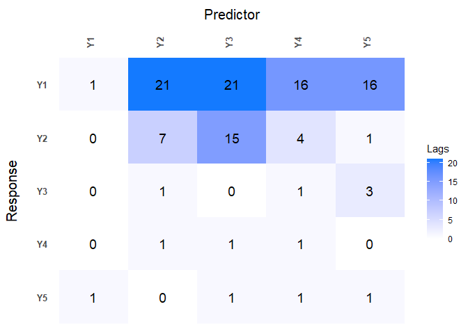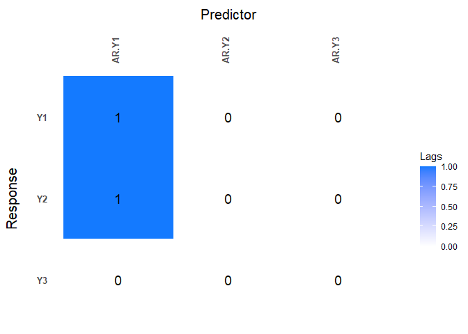 VARcv <- sparseVAR(Y = scale(Y), selection = "cv")