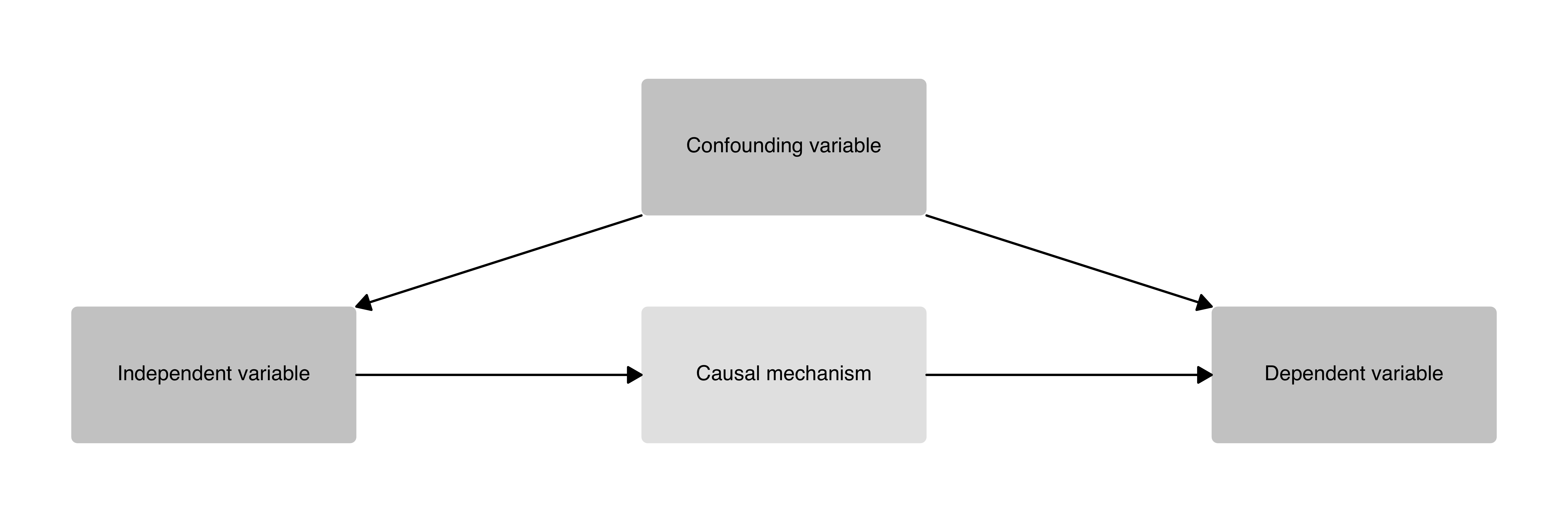A one-step causal mechanism plot with an independent variable, dependent variable, one causal mechanism box, and a confounding variable.