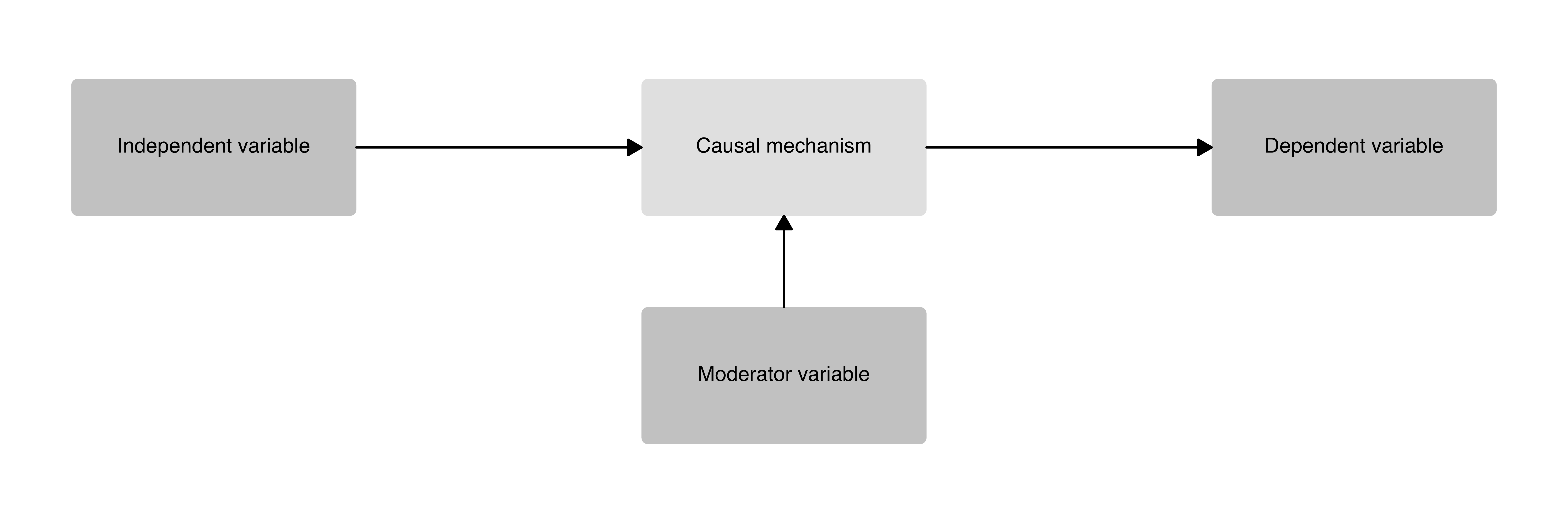 A one-step causal mechanism plot with an independent variable, dependent variable, one causal mechanism box, and a moderator variable.