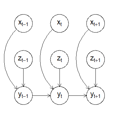 install.packages("dynamite", repos = "https://ropensci.r-universe.dev")A single-channel model with time-invariant effect of z,
