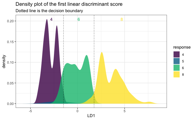 fitSmall <- folda(mpgSmall[, -1, drop = FALSE], mpgSmall[, 1])
