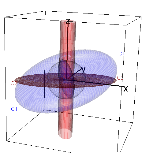 #> 0 0 3The following figure shows views of two generalized ellipsoids. (blue) determines a proper, fat ellipsoid; it’s inverse