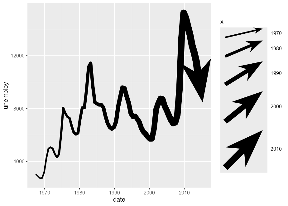 which has no equivalent in vanilla ggplot2. It adds arrows in between