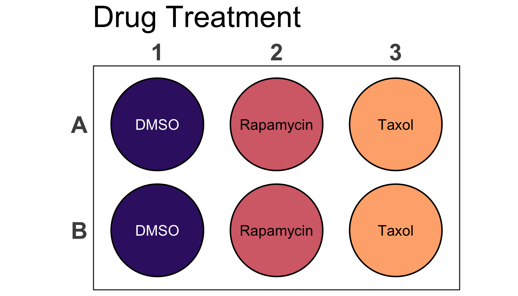 You can use this example data frame to create a 96-well plate layout plot using the plate_plot() function and setting the plate_size argument to 96. There are currently two options for the plate well type. These can be either "round" or "square". In the plot below we specify "round", while "square" is the default value when the plate_type argument is not provided.