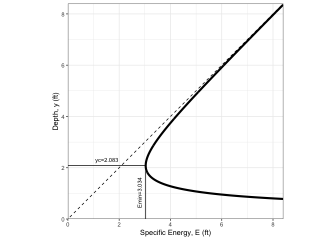 spec_energy_trap( Q = oc3$Q, b = oc3$b, m = oc3$m, scale = 4, units = "Eng" )