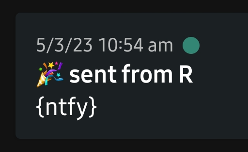 Alternatively, you can set these as environment variables and they’ll get used by ntfy_send() automatically: