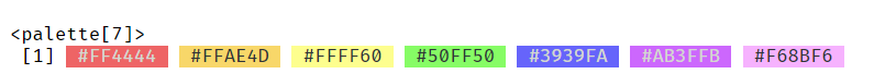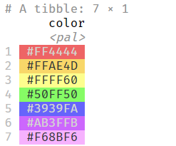 length 7 vector of hex codes, we can create a palette.