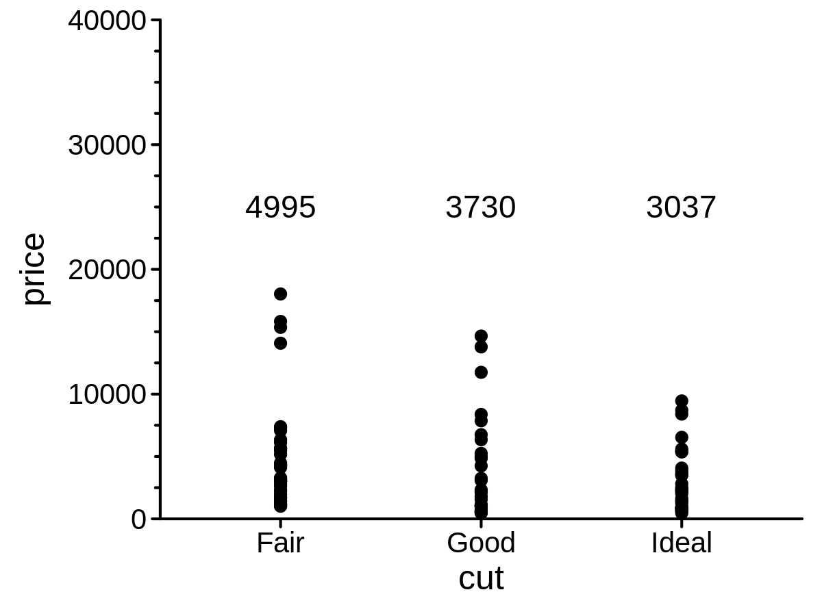 p <- ggplot(data = mini_diamond, mapping = aes(x = cut, y = price)) +
