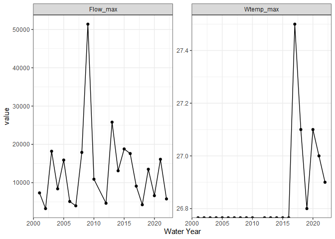 pivot_longer(c('Wtemp_max', 'Flow_max')) %>%
